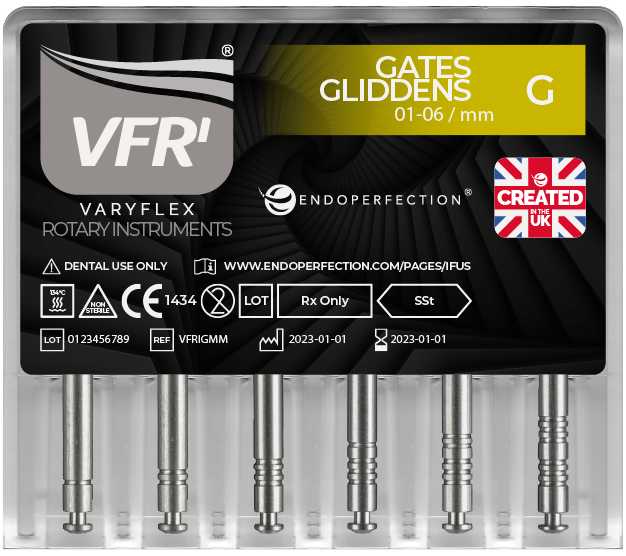 VaryFlex Gates Gliddens are stainless steel instruments that can be used for the preparation of the coronal aspect of the canal.